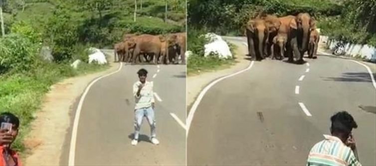 The ten wild elephants who arrived in the Nilgiris last week from Mettupalayam in coimbatore district tented around the Kallar, Burliaru, and Rannimedu areas for food and water. They've set up camp in places like Blackbridge, Glandale, and Runnimedu. Elephants cross the Coonoor-Mettupalayam road on occasion. Motorists should be cautious, especially in the vampire black bridge region, because there is a tendency to cross the road and wander on main roads, according to the forest service. Meanwhile, on Salas Road yesterday, elephants attempted to cross the road. The young people in the van took a selfie in front of the elephant herd at that moment. As a result, the infuriated elephants dashed towards the youngster.