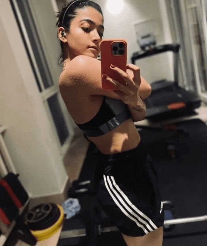 In the same vein, Rashmika's recent instagram workout photo is eye-catching. "Aahhhh...my kinda satisfying work," she captioned a photo of herself in a sweaty position after a strenuous workout. rashmika is seen sweating it out in a black gym attire during a high-intensity workout session. The way she posed was fashionable, and the second photo, which displays her legs sweating, inspires us to go to the gym. Overall, by publishing this stunning gym photo on her instagram story, she sets significant fitness objectives.