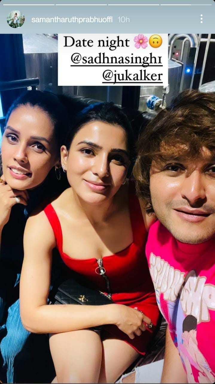 Preetham is Stylish, while Sadhna is a cosmetics artist. They were with her through thick and thin, and the stunner is extremely close to both of them. samantha used her instagram story to welcome Sadhna and Preetham 'home,' initially sharing a photo of her flawless skin and dazzling grin as she posed with the two in the car after wrapping up the shoot of her forthcoming film Yashoda. Then she shared another photo of the couple having fun on a date night. The lady wore a red gown and looked as stunning as ever.