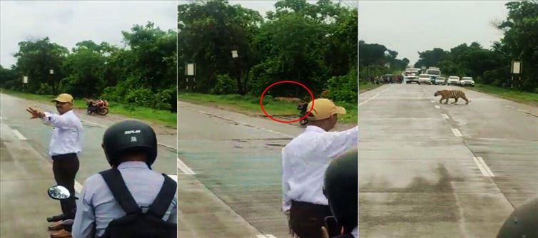 అక్కడ పులి రోడ్డు దాటేందుకు ఇబ్బంది పడుతోంది. వచ్చి పోయే వాహనాలు దాన్ని ఇబ్బంది పెడుతున్నాయి. అందుకే.. పులి రోడ్డు దాటేందుకు అధికారులు కొద్దిసేపు ట్రాఫిక్ నిలిపివేశారు. ఈ అరుదైన సంఘటన మహారాష్ట్రలో జరిగింది. మహారాష్ట్రలోని చంద్రపూర్‌లోని నాగ్‌భీడ్‌-బ్రహ్మపురీ రహదారిపై ఈ ఘటన జరిగింది.