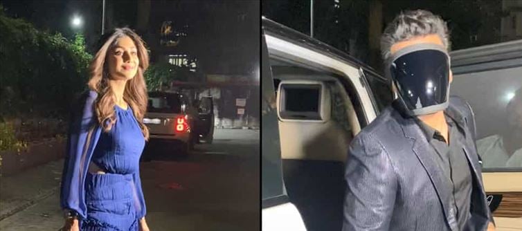 Shilpa Shetty and raj Kundra went out last night for a function and were photographed by the media. shilpa shetty posed for photos with the media while looking stunning in a blue chiffon outfit. However, raj Kundra appeared in a black outfit with a black face shield. His facial covering has drawn attention, and he is the target of internet trolls on social media.
