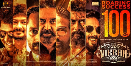 The 100th anniversary of lokesh Kanagaraj's Kamal Haasan-starrer vikram was celebrated yesterday in Coimbatore. vikram was the film that was released last june to revive kollywood when tamil cinema was not getting the expected success. It was Kamal's quality comeback film. He produced the film through his own production company, Rajkamal Films. This film made kollywood proud to the extent that it was celebrated as rrr for telugu and kgf for Kannada. While Baahubali 2 was the highest-grossing film in tamil Nadu, vikram beat its record in a single month to take the top spot.Vikram's movie has successfully crossed 100 days in theaters now. In today's era, it is surprising if a movie runs for 25 days. vikram has made a great achievement by running for 100 days. The 100th day of the film was celebrated in coimbatore yesterday. Actor kamal haasan thanked everyone and also the fans who made vikram film run past 100 days. He added saying that he needs all fans to support good movies. bollywood is afraid of Kollywood. Kamal proudly said that their vision is now turning towards South indian cinema. The fans clapped and cheered after hearing his speech.