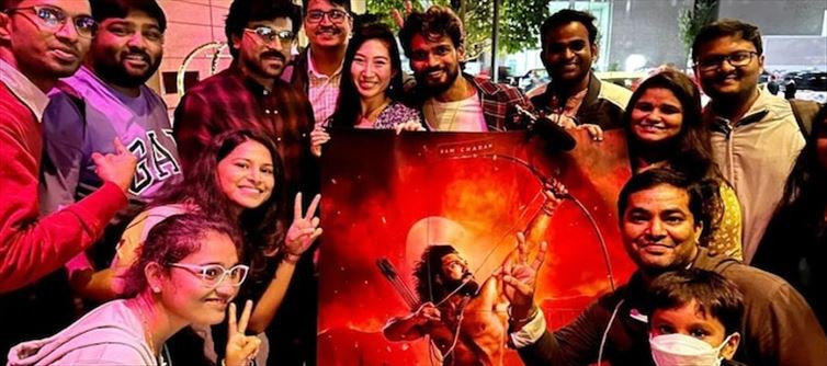 Prior to departing for Japan, ram Charan and Upsana were sighted at the hyderabad airport a few days ago. The Japanese audience is eager to see the movie in theatres. ram Charan greeted his admirers and posed for photos with them after having dinner with friends and supporters in a neighbourhood restaurant in Japan. A poster of him from rrr was presented when they met him. The images are currently trending on social media.