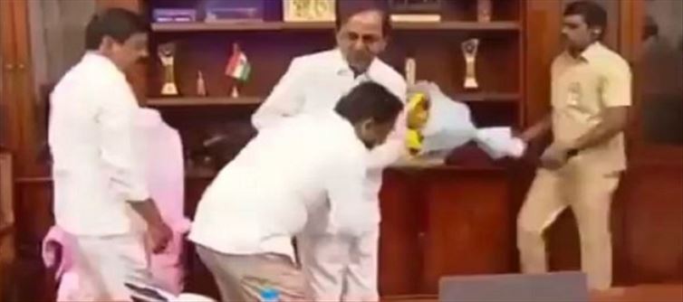 Srinivasa Rao was spotted greeting the chief minister with a bouquet as soon as he entered the auditorium where the function was being held. The official then removed a piece of paper from his trouser pocket and handed it to the cm, who placed it in his shirt pocket. He then knelt down to touch KCR's feet. Srinivasa Rao was then seen begging with him, hands clasped. Not content with that, he touched KCR's feet again as he was leaving and made another request with folded hands.