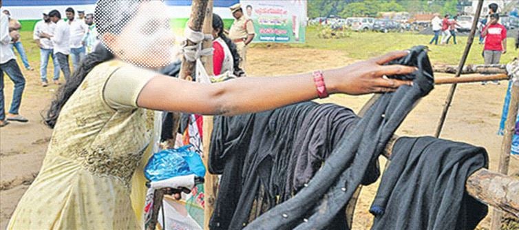 Holidays are given to schools and colleges, and buses are used to transport attendees to the convention. All of this occurred on monday when jagan made his first trip to Narasapuram. But then something repulsive also happened. Girls who were wearing black dupattas to the meeting were ordered to take them off and leave them somewhere. After the meeting, they were instructed to bring them. The authorities forbade many females from wearing dupattas while they were inside or outside due to their strong reluctance.