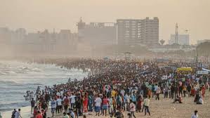 On New Year's Eve, thousands of people typically gather at marina beach, Elliot's beach, and other city locations.
