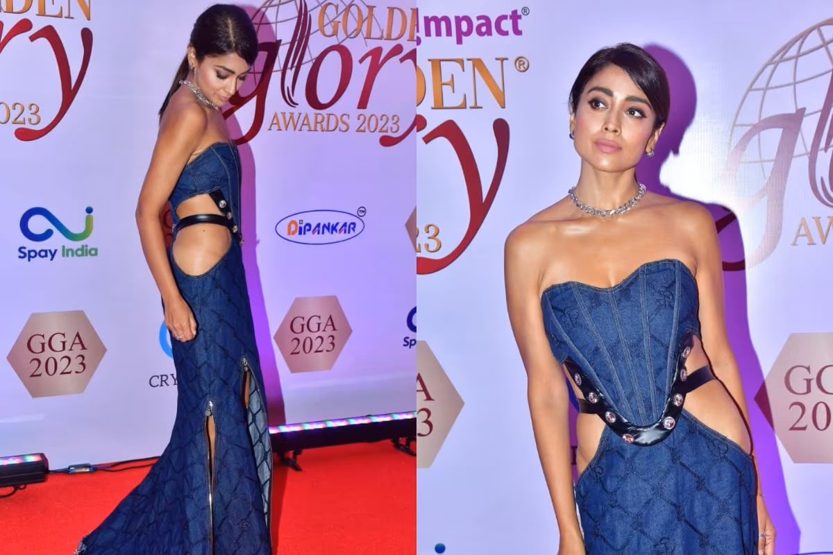 Shriya may be seen walking to an event in the paparazzi footage while sporting an off-shoulder denim dress with deep rips at the waist. She was able to highlight her curves thanks to the body-hugging attire. Shriya accessorized the denim dress with a bold necklace and a ponytail. Despite Shriya's daring appearance, not many people were impressed. social media users made comparisons between her and Urfi Javed, while some said Shriya did not look well in the garment.