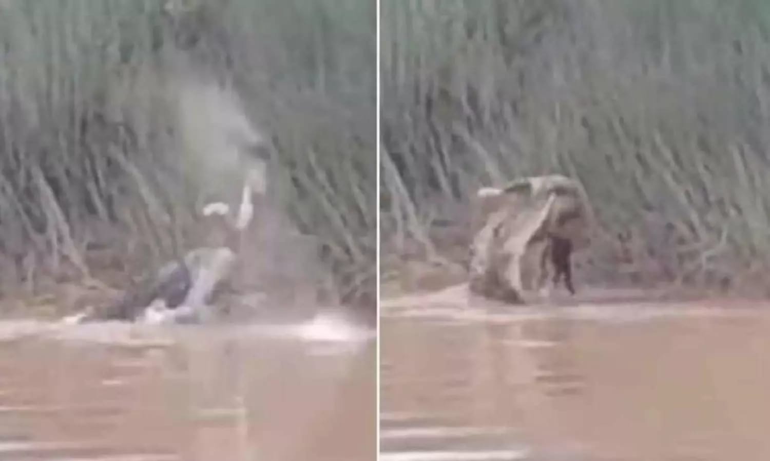 While the crocodile was attacking the woman, those nearby took a video on their cell phones.It is known that a similar incident took place in hajipur in bihar a few days ago. A crocodile attacked a child who went to bath in the river. The child died in this incident. Enraged by this, the relatives of the child and the villagers pulled the crocodile out of the river and beat it to death.