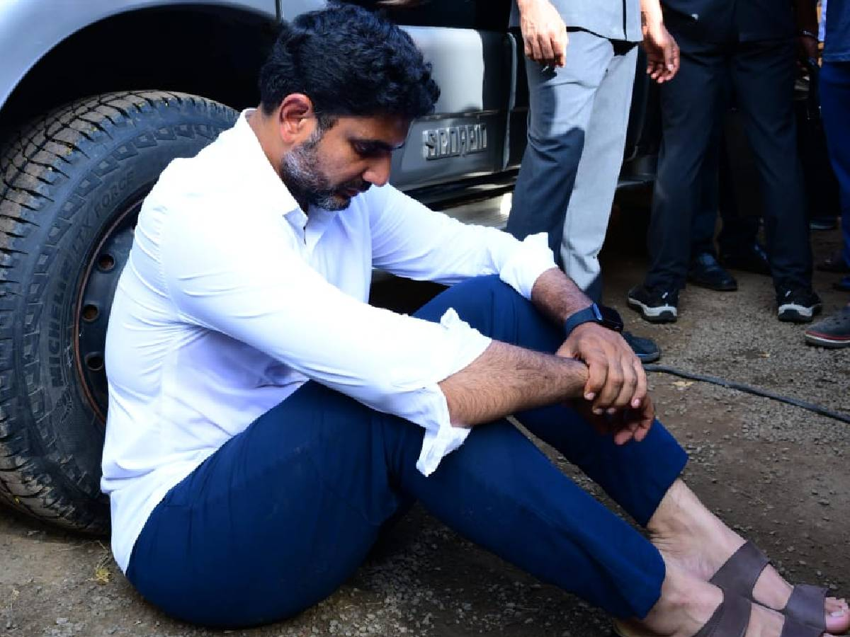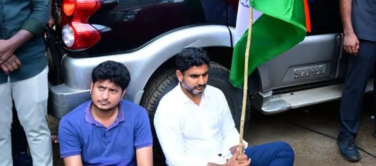 Lokesh abruptly ended his yatra and headed to vijayawada to visit chandrababu naidu while he was being held by the police. However, lokesh has been halted and his path has been impeded by police officers. During this, lokesh got into a heated altercation with police officers, asserting his parental rights to see and see his father. In opposition to Chandrababu's detention, he protested by sitting on the road.