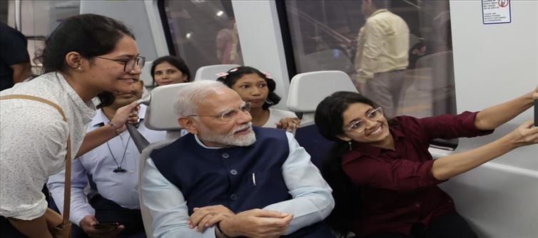 Metro passengers took selfies with the Prime Minister. Then, a woman sang a song in sanskrit and wished PM Modi on his birthday. A new metro line on the delhi Airport Metro Express line was also inaugurated today. The total area of the Yasobhoomi Convention Center project is 8.9 lakh square meters, of which 1.8 lakh square meters are under construction. Grand meetings, conferences, and exhibitions can be held there.