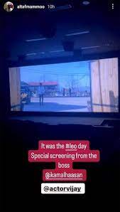 Ulaga Naayagan kamal haasan has discovered the movie Leo which is released today starring Thalapathy Vijay. One of the latest photos about this has been released and is going viral. lokesh kanagaraj - Thalapathy Vijay's collaboration 'Leo' was released the day before yesterday and continues to receive good responses from fans. On the first day, the film collected more than 140 crores, and on the second day, it was reported that it collected more than 100 crores. On the first day, along with Thalapathy Vijay's fans, many celebrities including Anirudh and Keerthy suresh watched the film. Later Superstar Rajinikanth also watched the film and congratulated the producer and director lokesh Kanagaraj. Following Superstar, World hero kamal haasan has seen 'Leo'. It is said that a special scene was screened for kamal haasan and like Vikram, Lokesh's making in the film also made him a Mersal. After watching the film, kamal haasan is expected to give his opinion about the film 'Leo'. Although kamal haasan did not act in the film 'Leo', Kamal Haasan's voice was heard in the climax scene. It is noteworthy that the film confirmed Loki's presence in the LCU.