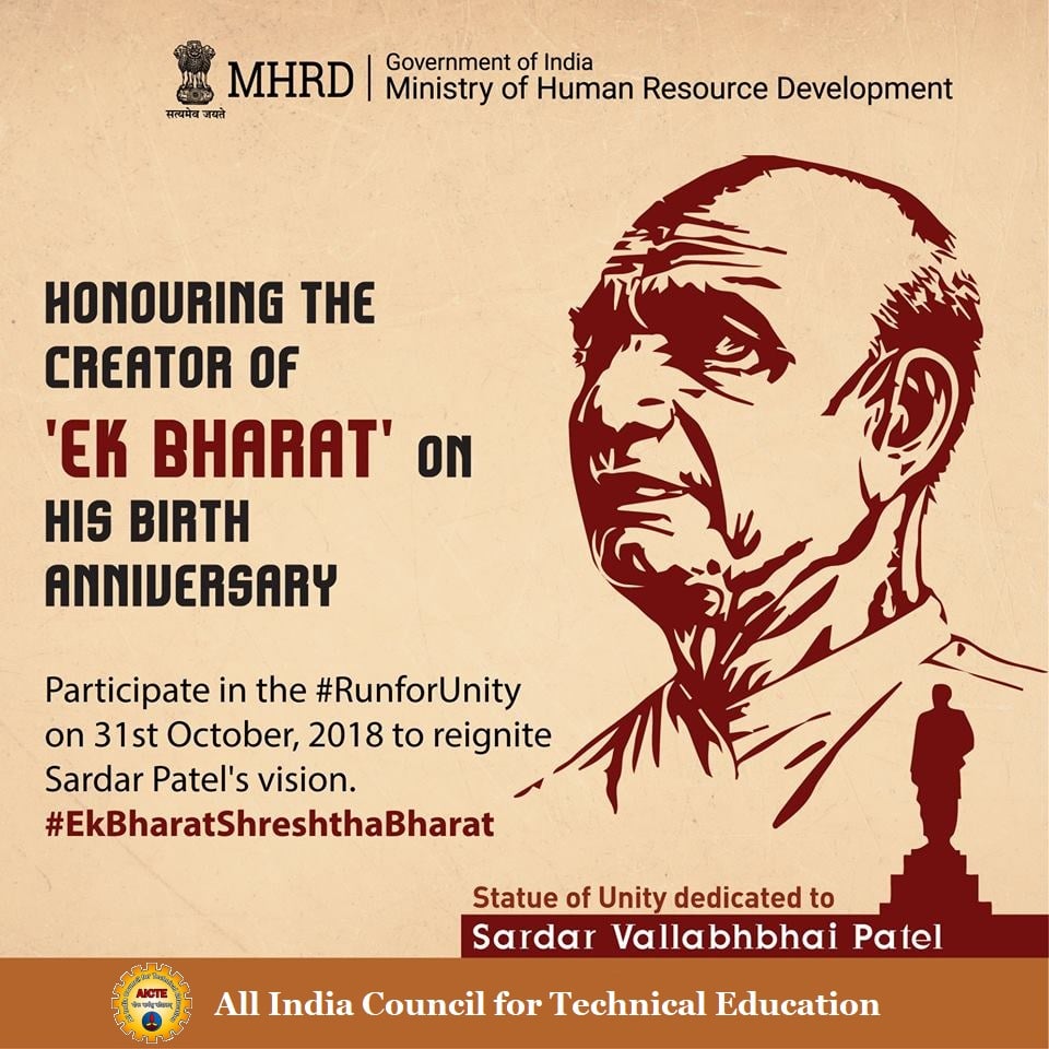 In 2014, the indian government announced that october 31st, the anniversary of Sardar Vallabhbhai Patel's birth, would be observed as National Unity Day, also known as Rashtriya ekta Diwas.