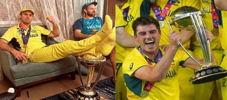 In this situation, Mitchell Marsh's behavior without giving due respect to the world cup shows his seriousness, and the fans are criticizing him severely. Australia's World Cup-winning team captain Pat Cummins, who bought the trophy, shared it with his teammates.