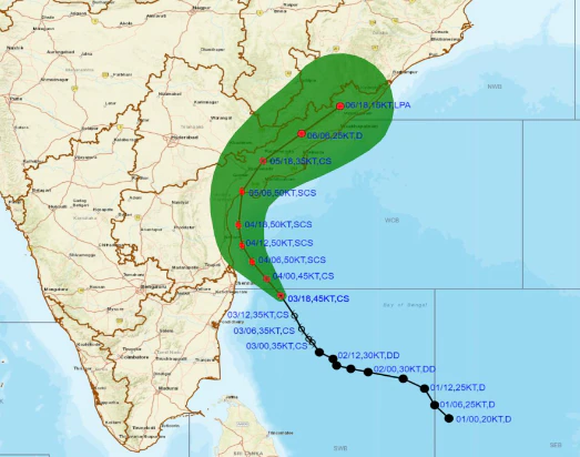 Cyclone Michaung, which is building in the Bay of bengal, has caused officials in Andhra Pradesh's ntr district, Pondicherry, Karaikal, and yanam to close schools for two days beginning Monday. In tamil Nadu, the government proclaimed a public holiday on monday and requested that private enterprises and offices urge their employees to work from home or only with necessary personnel in unavoidable instances due to the coming storm.