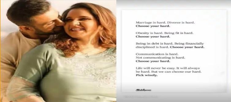 Recently, Sania Mirza's instagram post has added fuel to the divorce speculations. In her post, she shared a reflective poem discussing the challenges of marriage and divorce, emphasizing the difficulties in life choices, relationships, health, financial matters, and communication challenges. The poem concludes with the message that life is never easy, but individuals can choose their difficulties wisely.