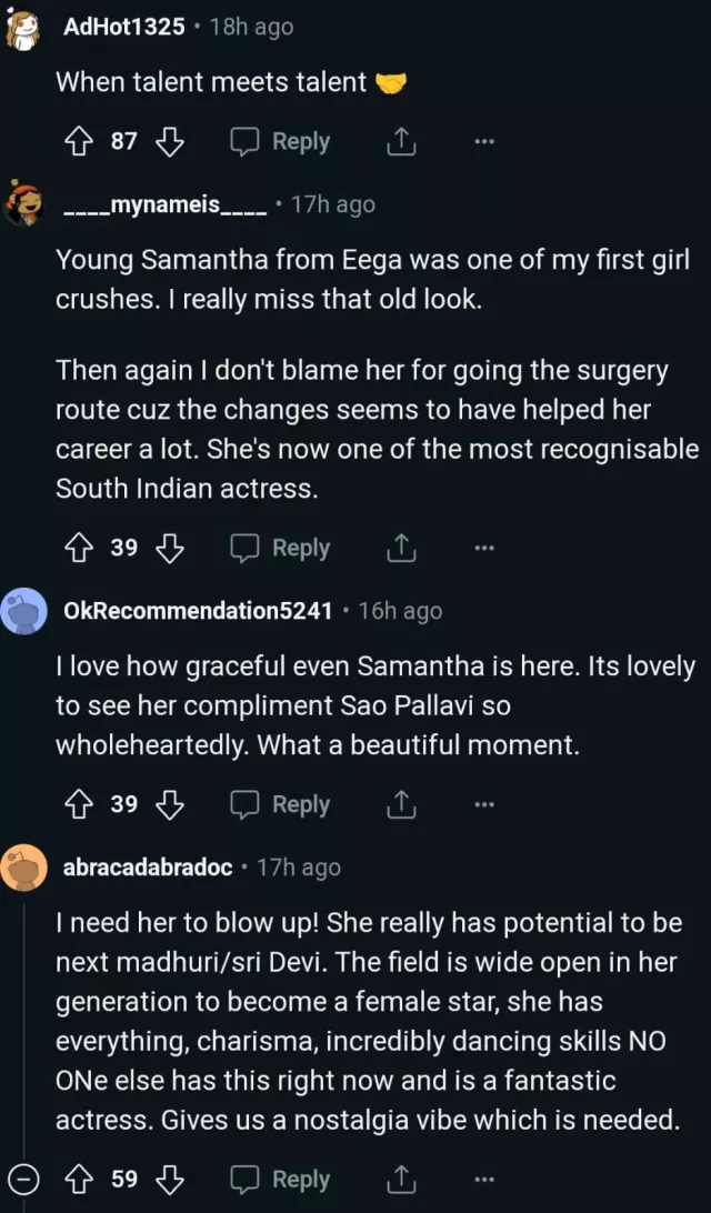 A Reddit user submitted an old video of one of Sai Pallavi's dancing performances. In the video, she can be seen dancing her heart out to the song Kehna Hi Kya from Mani Ratnam's Bombay. She was dressed in all black and looked stunning. samantha Ruth Prabhu was also shown in the video, having appeared as a guest on the dance show at the time. She couldn't stop admiring sai pallavi for her extraordinary elegance and composure. Furthermore, samantha was heard complimenting Sai Pallavi's dancing abilities and calling her outstanding.