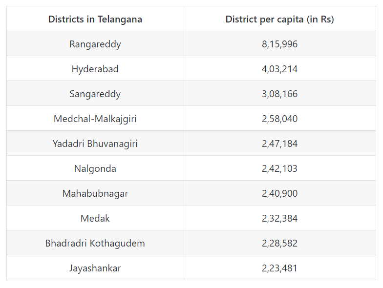 List of top 10 richest districts in Telangana