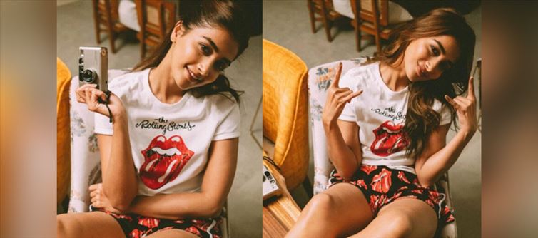 The actress was seen sporting a white top with a Rolling Stones pattern and black shorts. She posed for the camera and looked fantastic. Her attractive postures just drew our attention. The diva captivates us with her stunning beauty. She flaunted her toned legs and simply looked stunning. The diva has a stunning grin, and we can't help but fall in love. The actress is dominating the industry and looks great. The diva was photographed having a pajama party and offered big wardrobe aspirations.