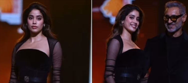 Shantanu and Nikhil, designers, displayed their all-black collection at the 69th Filmfare Awards Curtain Raiser in collaboration with gujarat Tourism. janhvi kapoor walked the ramp for them, wearing a black gown from their collection. The excerpts show her doing a showstopper for the designers, posing with the other models, and greeting the crowd alongside Nikhil.