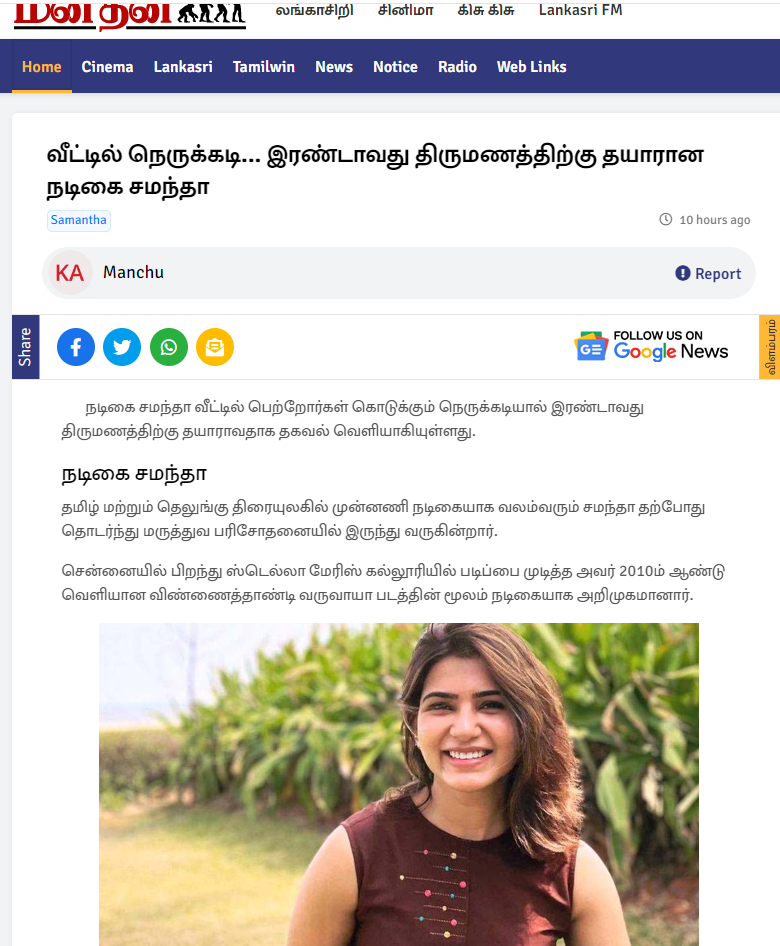 In this case, a leading tamil media has reported that Samantha's parents are forcing her to do second marriage and settle down immediately as time is running out and she needs a male companion. samantha even shared a photo of her mother recently on her instagram and that added fuel to the fire. On the professional front, samantha is currently gearing up to kick-start her big debuts in bollywood and hollywood with hindi version of Citadel and The Arrangements Of Love, respectively.