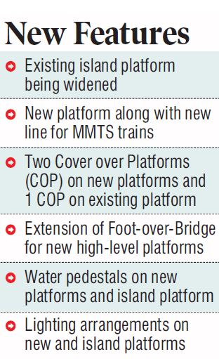 New high-level platforms, an eight lakh liter overhead water tank, a new station building, an improved circulating area, the provision of an approach road, the installation of an electrical substation, a maintenance shed, two FOBs, five escalators, nine lifts, bio-toilets, and an automated coach washing plant are among the infrastructure projects being undertaken at Cherlapally.