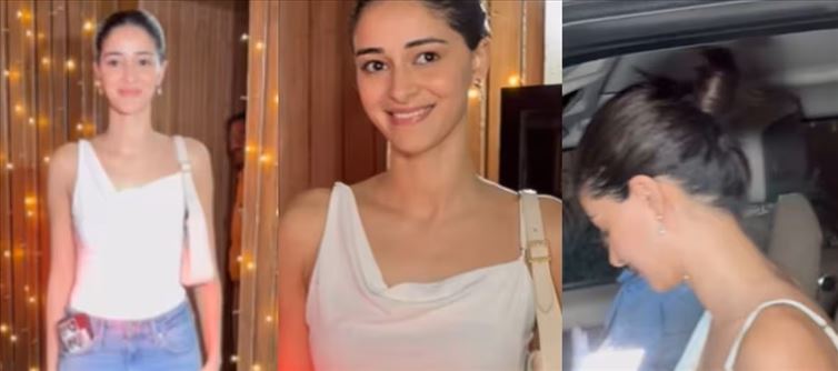 Ananya was dressed in boot-cut jeans and a white cami top with a cowl neck. A white shoulder purse and delicate earrings finished her ensemble. Her well-defined eyes, dewy makeup, and stylish hairstyle helped her strike the ideal mix of charm and elegance. She was an amazing sight to witness.