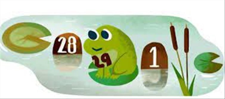 To commemorate "Leap Day," google published a doodle on Thursday, february 29. This doodle is exceptional thus far because it can be seen practically anywhere in the world. In Google's doodle, the dates february 28 and march 1 are displayed with a frog that is marked with the leap day date. The frog leaps, and the Leap Day date disappears. This scene is depicted with the word "Google" prominently displayed against the backdrop of a pond filled with stones and foliage.