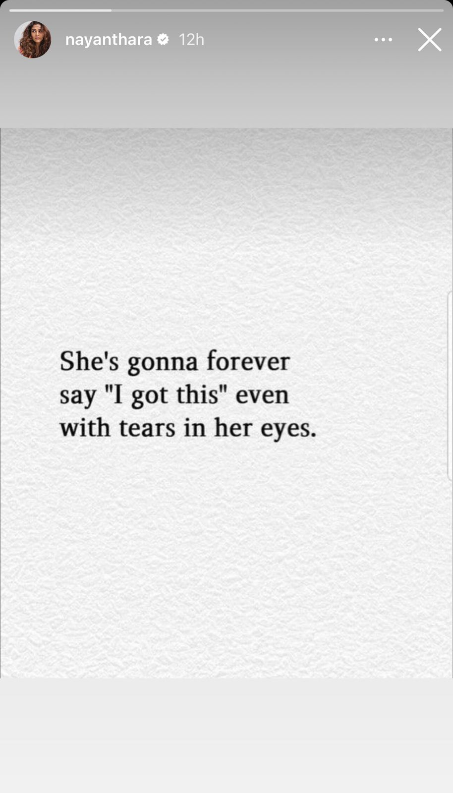 Nayanthara's narrative said, "Even with tears in her eyes, she's gonna say 'I got this,' forever." The india Herald is unable to verify if Nayanthara previously followed Vignesh.Even if Nayanthara unfollowed Vignesh on instagram, their images are still visible on her page. Nayanthara posted a black and white photo of herself standing next to Vignesh, who has his arms around her, on her instagram stories last week. Nayanthara didn't compose anything, but she did include the song Kho Gaye Hum Kahan by Prateek Kuhad with her narrative.
