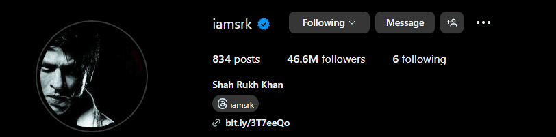 Bollywood actor Shah Rukh Khan, popularly referred to as king Khan or SRK is a social media mogul in addition to captivating fans on screen. Standing tall as one of India's most followed superstars on social media, he boasts astounding numbers: 46.6 million instagram followers, 44 million X followers, and 43 million facebook followers.