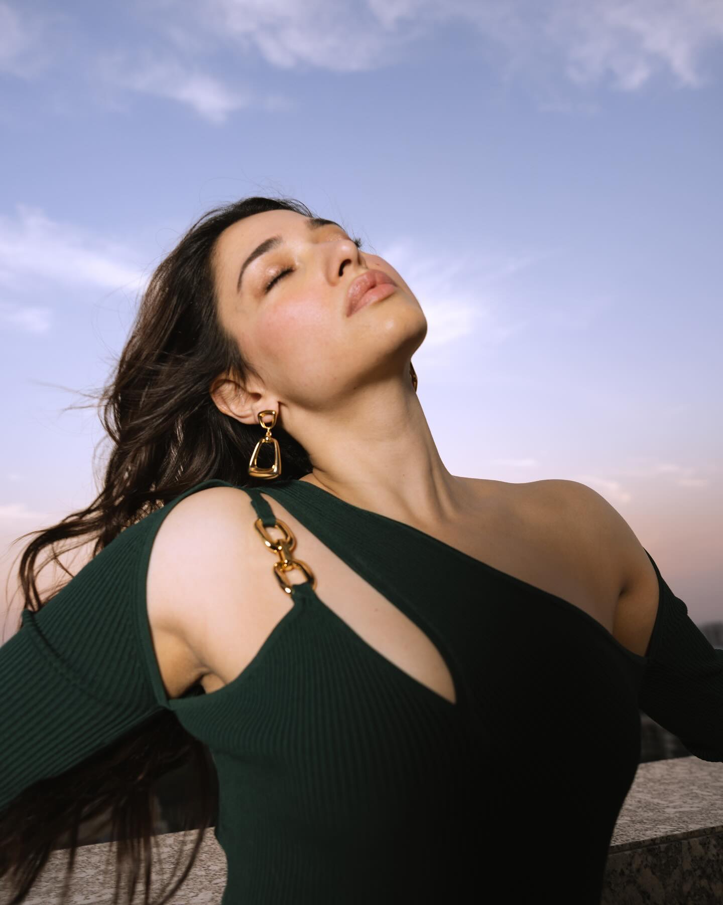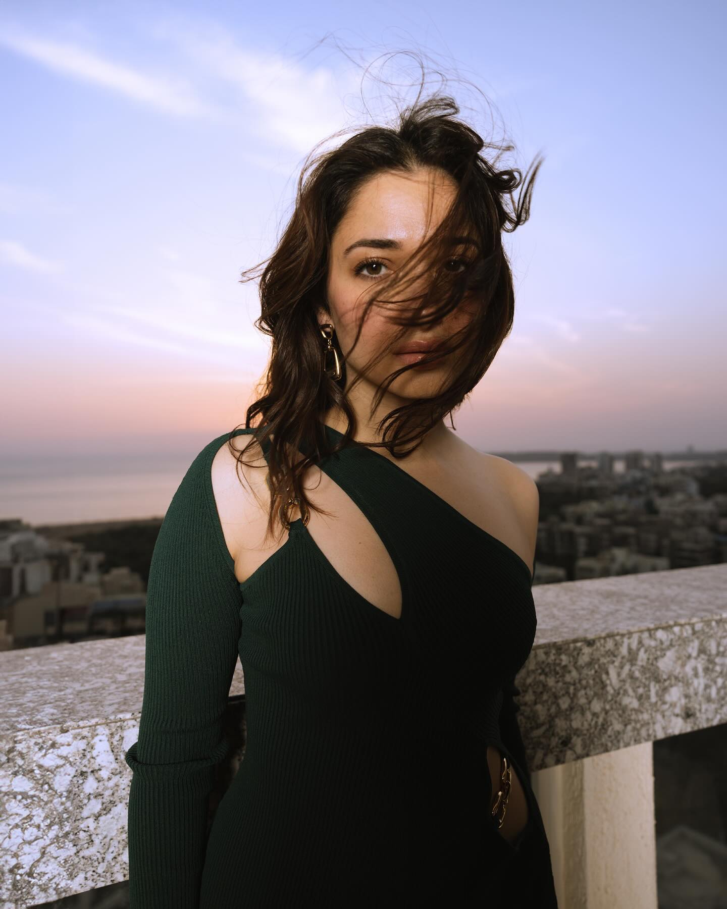 Tamannaah Bhatia looked stunning in a dark green one-shoulder midi dress when she shared the photos on her timeline. With the setting sun as her backdrop, tamannaah bhatia posed on several balconies, dishing out seductive glances. In addition, the actress from lust stories 2 looked stunning with dewy makeup. She penned the caption.