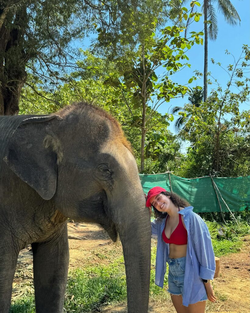 Sanya is shown in the picture relaxing in the glow from her swim. She looks confident and sun-kissed as she takes a picture beside the pool, exuding the carefree spirit of a holiday. Her toned body is emphasised by the bright orange two-piece, and a little smile suggests that she is having fun. Malhotra's regular style is noticeably different from this poolside picture session, which shows off her newly discovered bravery and confidence in her own flesh.