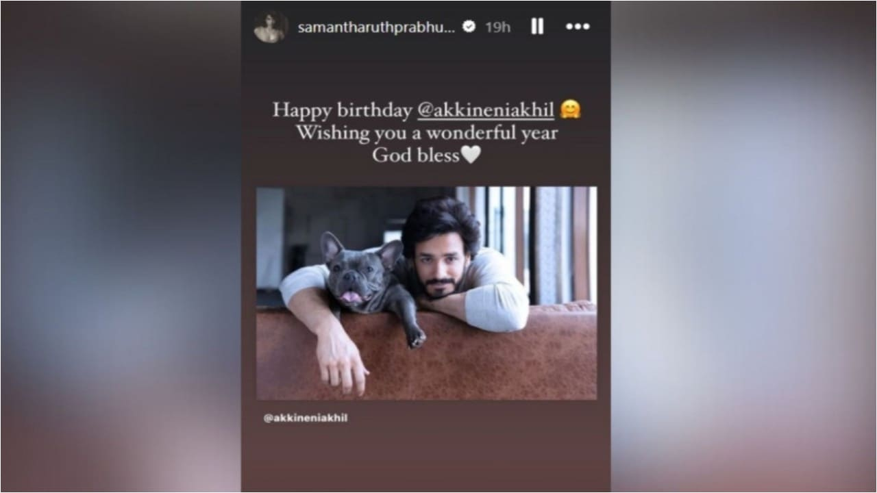 The kushi star posted a cute picture of akhil holding a cute puppy on her instagram stories. She wrote, "Happy Birthday @akkineniakhil," as the description for the snapshot she shared. I hope you have an amazing year. god bless."