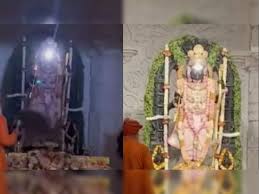Ram Lalla idol in ayodhya is illuminated by "Surya Tilak"...