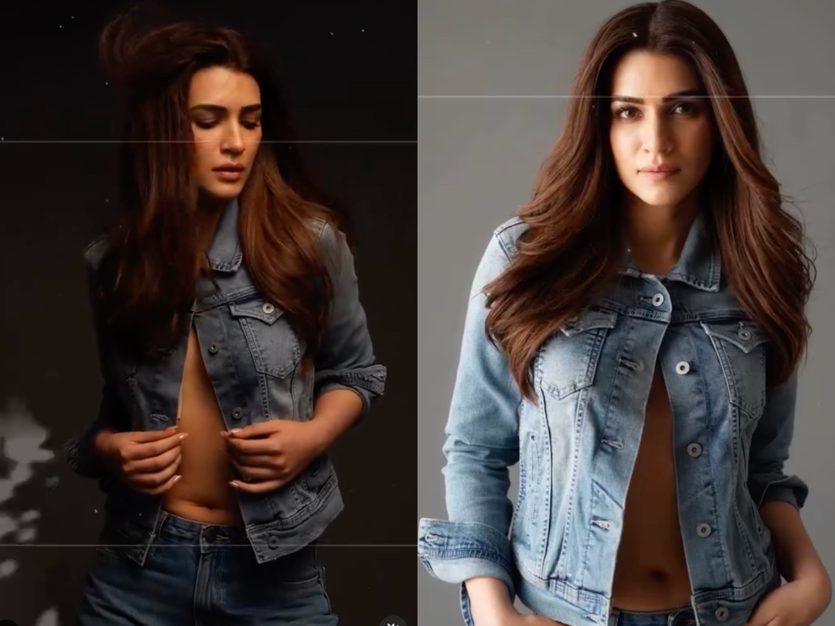 Kriti Sanon has starred in many magazine cover shoots, but her most recent one might be our favorite. The 33-year-old looked hotter than ever as she bared her midriff in a denim jacket with nothing underneath. Kriti, who is known for showing off her enviable figure in daring outfits, treated fans to a BTS video of her photo shoot on monday night. In the seductive video, Kriti can be seen showing off her hot curves as she strikes a series of sensual poses wearing a blue denim jacket with nothing underneath. The video quickly went viral, with Kriti's fans drooling over her stunning appearance. “Stop this, please! My heart can’t handle all this beauty,” one fan wrote. “The hottest video on the internet,” another fan commented. The photoshoot was organized by Elle india Magazine. Kriti, meanwhile, recently walked the catwalk at a unique varanasifashion event. manish Malhotra, the show's presenter, set the stage against the city's Namo Ghat, and Kriti and ranveer singh stole the show that evening. Ranveer appeared in the videos sporting a dashing kurta, dhoti, and dupatta. Kriti, on the other hand, looked magnificent in a crimson lehenga that was accessorized with a chic yet understated dupatta. Ranveer and Kriti said their prayers at the kashi vishwanath temple before the fashion presentation. A man named manish Malhotra joined them. Kriti was dressed in a classic golden yellow salwar kameez, while Ranveer wore a light pink kurta with pajamas.