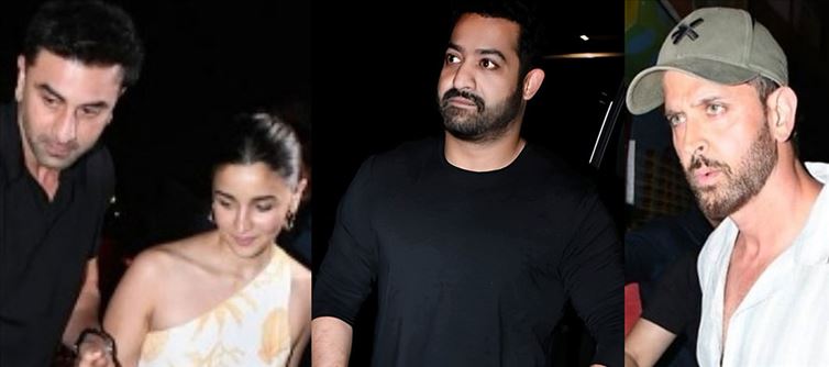 At a restaurant in Mumbai's Bandra neighbourhood on sunday night, ntr was observed eating dinner with his wife Pranathi and well-known bollywood stars like alia bhatt, hrithik roshan, Saba Azad, ranbir kapoor, and karan Johar. ranbir kapoor looked dapper in black, while alia bhatt looked gorgeous in a lovely flowing yellow and white one-shoulder dress. The two were spotted holding hands. While ntr is in mumbai filming war 2, hrithik roshan showed up at the eatery holding hands with his girlfriend Saba Azad.