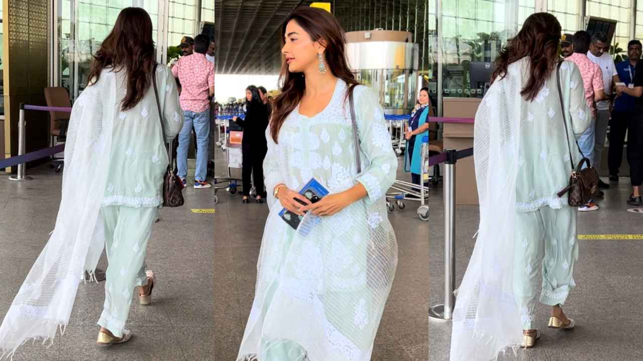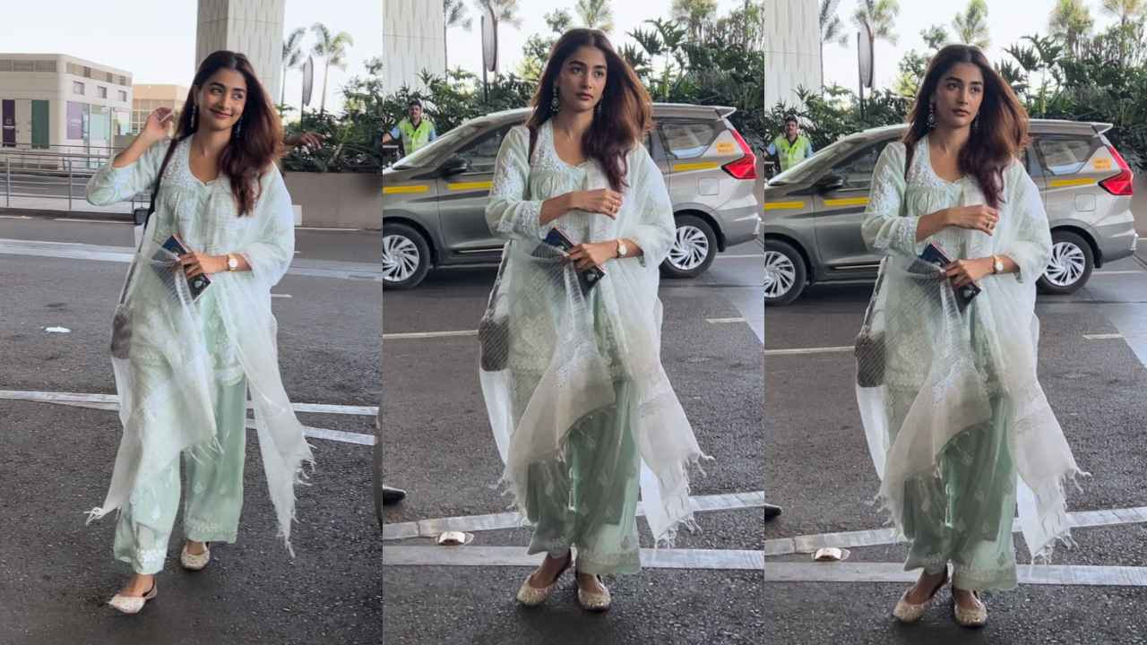 She recently sported an elegant airport costume that exuded ethnic appeal, living up to her reputation. To better comprehend how pooja hegde pulled off the effortlessly laid-back airport look, why don't we enlarge and take a closer look at her green and white ensemble?