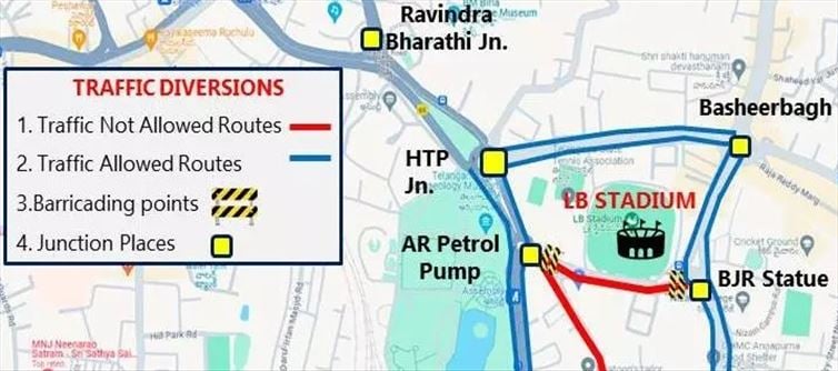 During the hours the convoy would be moving, police requested drivers to stay off the highway. Traffic from Basheerbagh towards assembly Metro station via BJR monument will be redirected via sbi Gunfoundry, Abids GPO Circle, and nampally station road; traffic from assembly Metro station junction towards BJR statue will be redirected towards Nampally. There will be a diversion into nampally for traffic heading from sujatha School towards the Khan Lateef Khan (KLK) building.