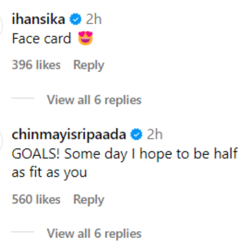 Actress hansika motwani also left a remark, writing, "Face Card." sanya malhotra also used the chance to put fire emojis in her comments section.