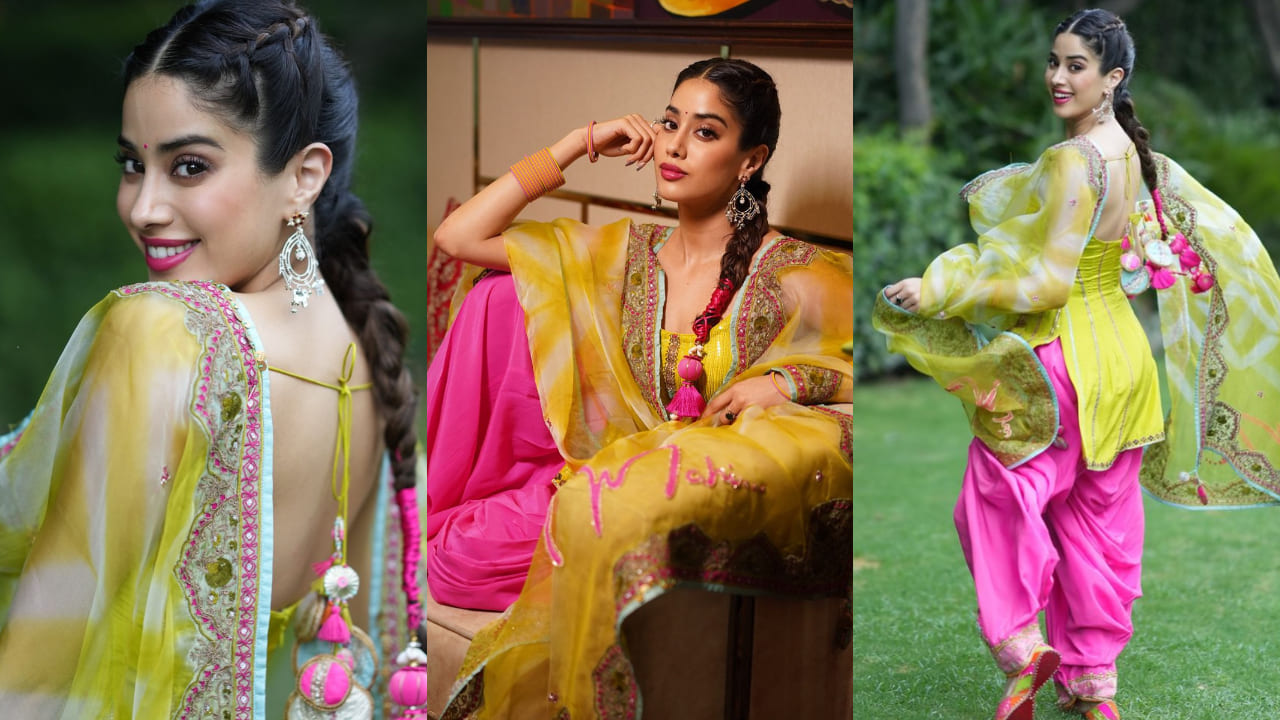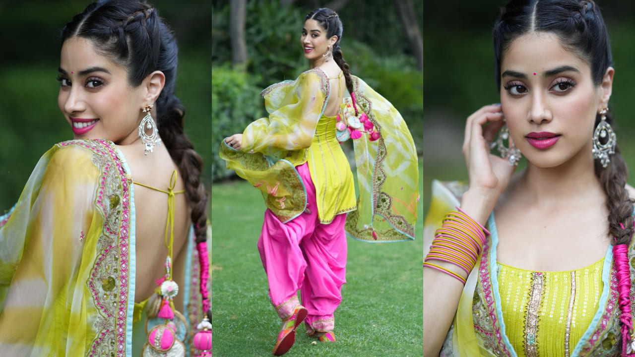 Janhvi recently visited Chandigarh, Punjab, and, true to style, she changed into a traditional punjabi kudi with a spin on the core of her film. Everyone's attention was drawn to her mix of traditional punjabi dress with cricket-themed aspects inspired by her film. Let us take a closer look at her distinctive punjabi costume.