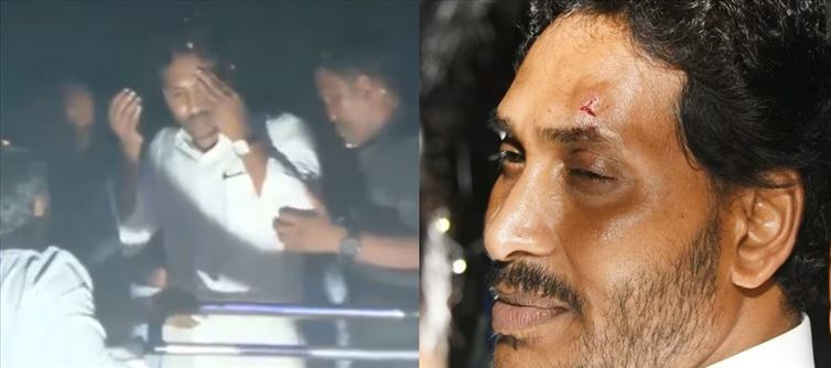 Satish struck jagan with a small stone when the former was holding a rally for the "Memantha Siddham" campaign at Vivekananda school Centre in Singh Nagar, vijayawada, on april 13.