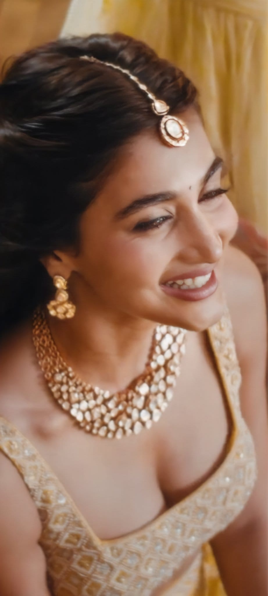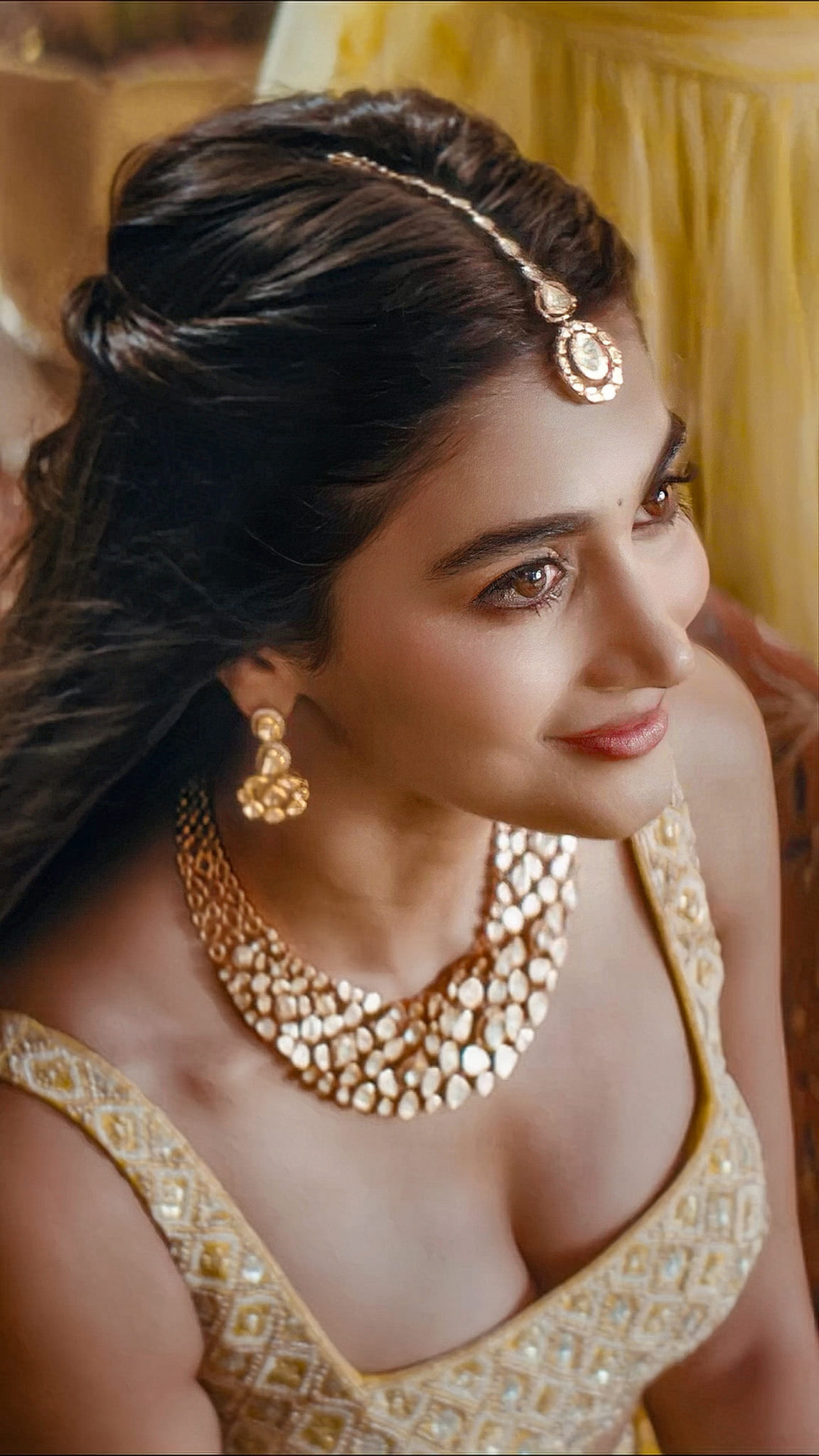 Pooja Hegde was also seen doing lunges and deadlifts, which are both exercises that can help sculpt and strengthen your muscles. The actress is the brand ambassador for Bhima gold Jewellers and recently she exposed her hot avatar for the advertisement and it made everyone's jaw drop. She was oozing oomph in a low-neck lehenga and some gorgeous attires. You can check the photos below,