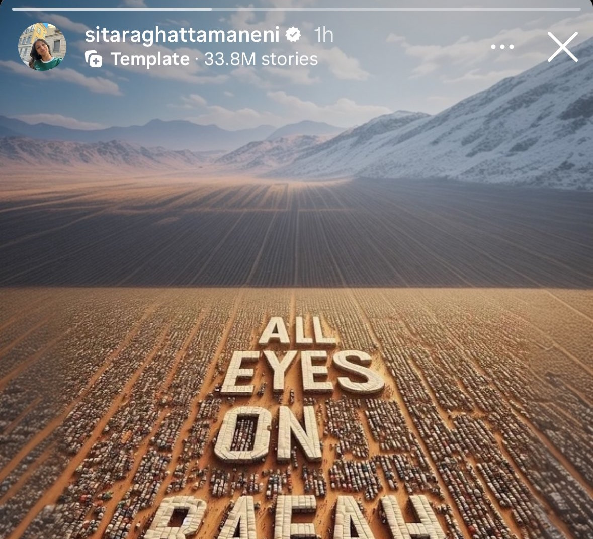 Many celebrities, including Samantha, priyanka Chopra, alia bhatt, varun Dhawan, rashmika mandanna, Dulquer Salmaan, Vijay Verma, and Kriti Kharbanda, have condemned Israel's bombardment on Rafah. Mahesh Babu's 11-year-old daughter, Sitara, too shared the photo and received scathing criticism. Trolls questioned her grasp of the issue, criticised her father of not providing her with enough pocket money, and threatened to boycott his films if the post was not deleted. Sitara finally removed it.
