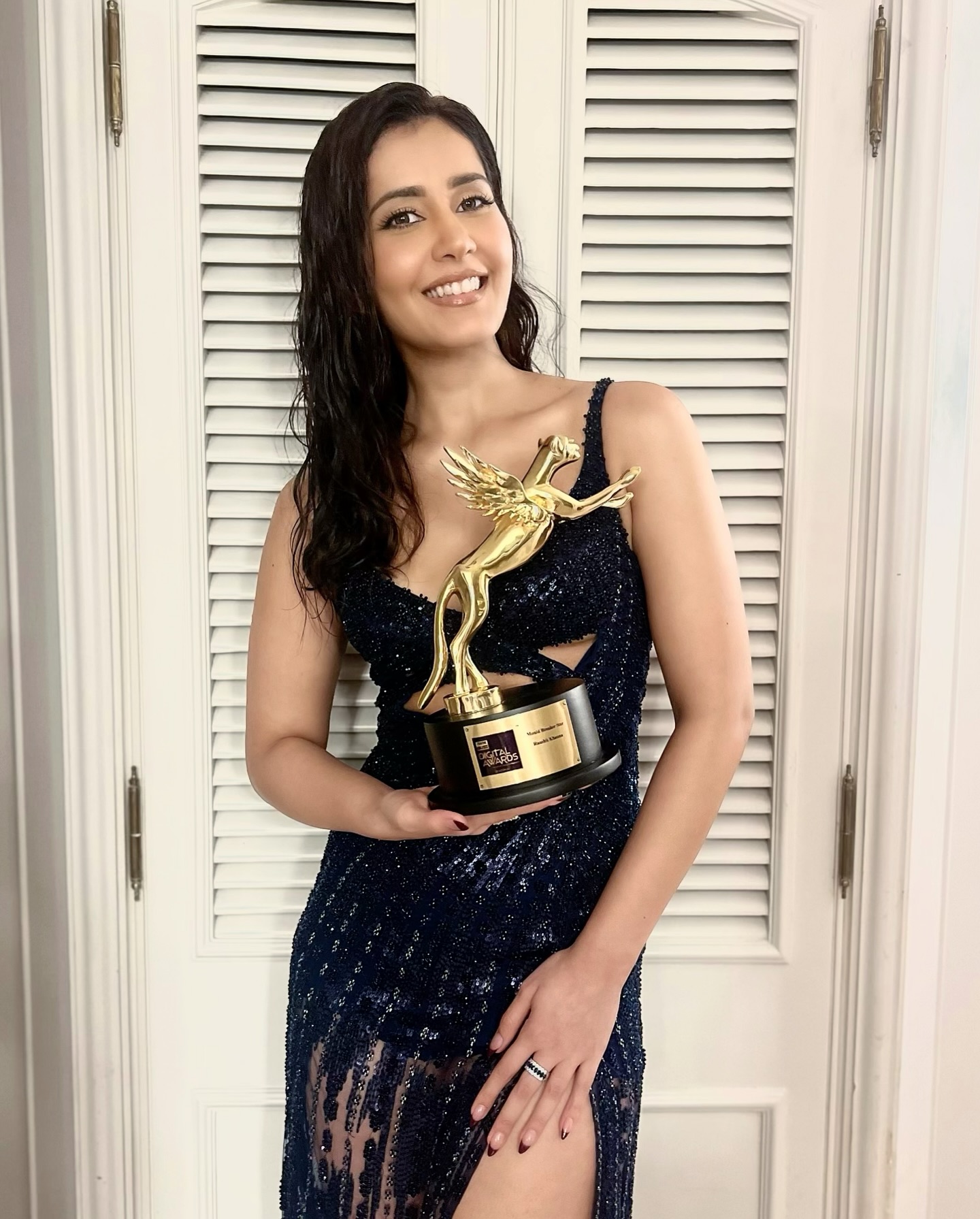 Raashii Khanna turned heads at the star-studded IWMBuzz wallet PLATFORM' target='_blank' title='digital-Latest Updates, Photos, Videos are a click away, CLICK NOW'>digital Awards season 6 red carpet event. The actress looked gorgeous in a cocktail party gown for the occasion, and her bold and striking presence left everyone in awe.