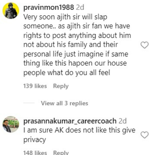 One of the most well-known performers in the business right now is ajith Kumar. The actor has always received recognition for his ability to balance his professional obligations with spending quality time with his amazing family, which includes his better half Shalini, and his children, Aadvik Kumar and anoushka Kumar. anoushka, Ajith's daughter, was observed in a recent update appearing on the internet to be a little concerned about being filmed without her consent.