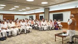 Rashtrapati Bhavan's swearing-in event is set to start at 7:15 p.m. PM-designate narendra modi spoke with the Members of parliament who will make up the Council of Ministers in the next administration before today's much-awaited swearing-in ceremony.