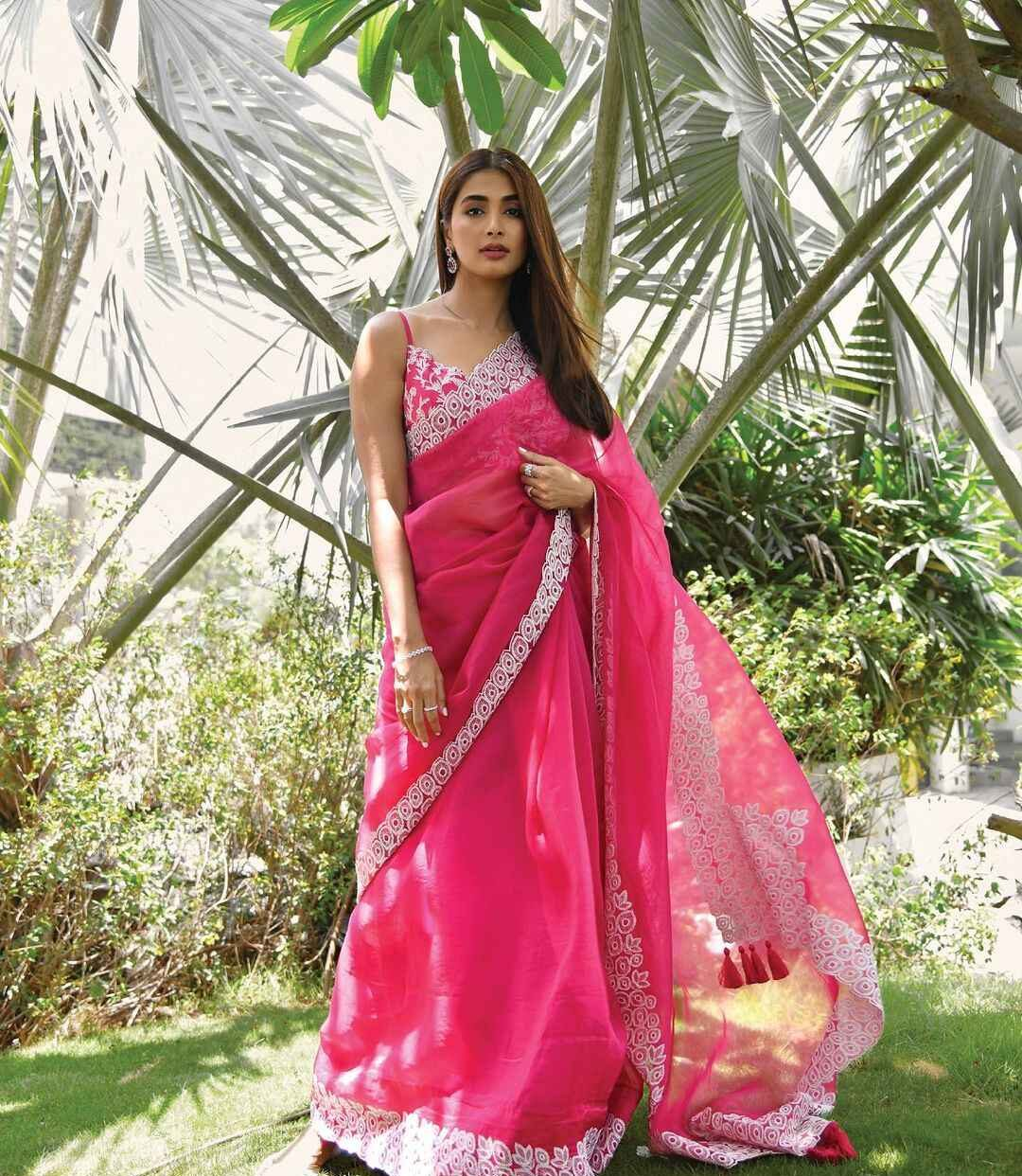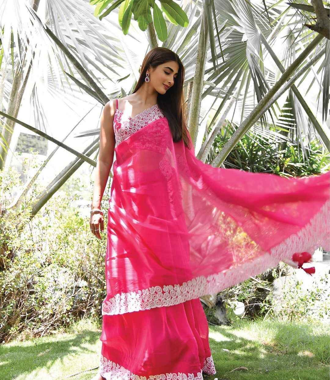 Pooja is not just a talented actor but also a fashionista, and she posts stunning photos of herself on instagram to show off her style. By contrast, this year marked the actress's Cannes Film festival debut. Pooja's ethnic appearance in a transparent organza saree of fuchsia pink is winning us over as her fans.