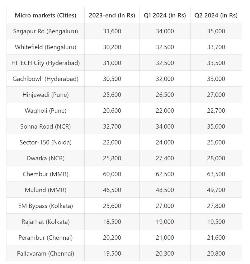 "In India, the second quarter of most years typically sees rents increase more than in other quarters due to the start of the new academic year and the employment of new staff," says Santhosh Kumar, Vice Chairman of ANAROCK Group. This year, these areas are seeing a significant influx of new home supply at the same time as a falling increase in rental values.
