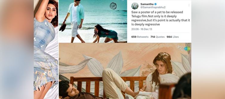Samantha tweeted about a poster of the film "Nenokkadine," starring mahesh babu, calling it regressive for depicting a woman crawling behind a man. This comment led to a significant backlash from Mahesh Babu's fans and stirred a heated debate on social media about the depiction of women in film advertising. Her criticism was supported by some and opposed by others, showing a divided public opinion.
