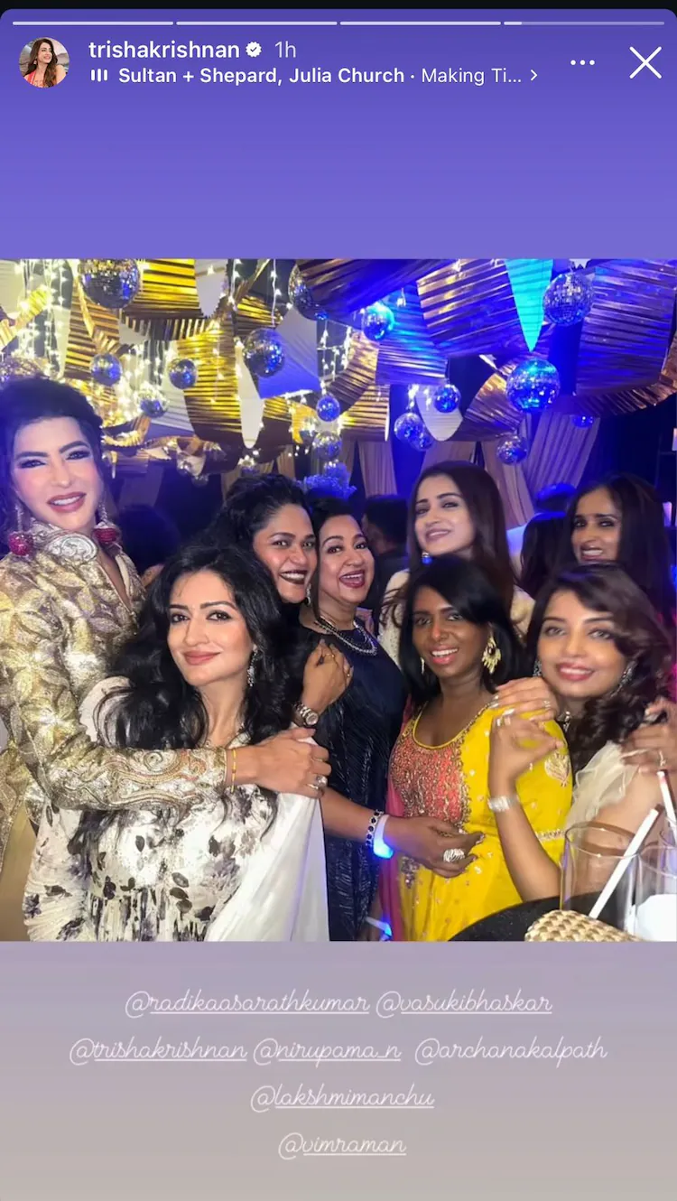 On July 1, in Chennai, varalaxmi sarathkumar and Nicholai Sachdev had their sangeet ceremony. The actor trisha shared some behind-the-scenes photos from the sangeet. She posted pictures of herself with actor Radikaa Sarathkumar and soon-to-be bride Varalaxmi. At the sangeet, telugu star lakshmi Manchu, vishnu Vishal, and a few others danced to famous songs from indian movies.