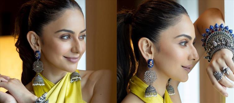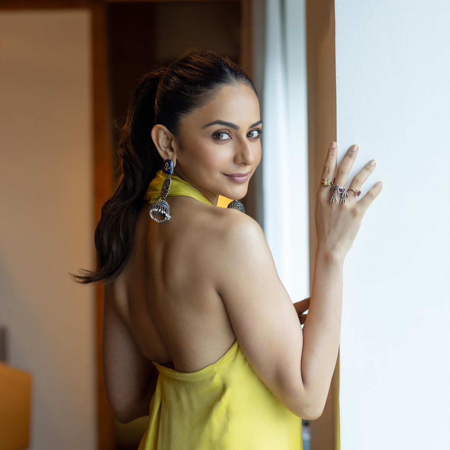 Rakul Preet Singh has always loved modeling, even as a student. The actress recently shared a photo of herself wearing a full yellow backless dress. The stylist's indian touch is what makes the outfit unique. The actress looks stunning with silver accessories. The style is finished with the large jhumkas, many bangles, and a neat ponytail, to name a few. The actress has a breathtaking appearance. She shared a photo of herself on instagram with the message, "Kaisi hai vibe." All we can say is that the mood is too entertaining to ignore!